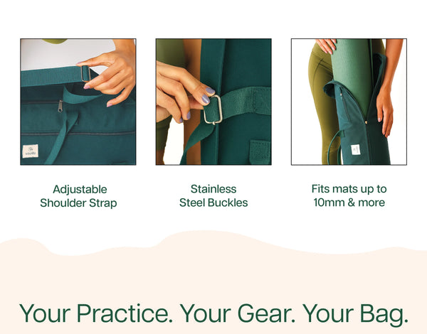 - CONVENIENCE, COMFORT & STYLE: Featuring a sleek zipper design, a carrying handle, and an adjustable shoulder strap, this bag ensures easy access, comfort, and style while carrying your mat and other essentials