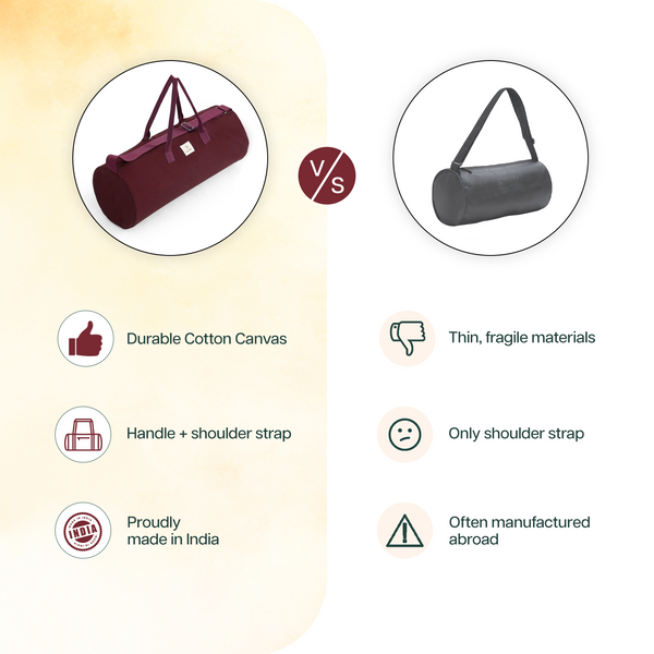 MULTI-PUPROSE FUNCTIONALITY: This premium yoga mat duffle bag doesn’t just carry your gear, it keeps up with your flow. Fits full-size mats up to 30 inches when rolled (2.5 feet wide and 10 mm thick) with ease, and still makes room for the extras. Whether you're heading to a yoga class, the gym, or travelling, it keeps your essentials sorted, secure, and always within reach