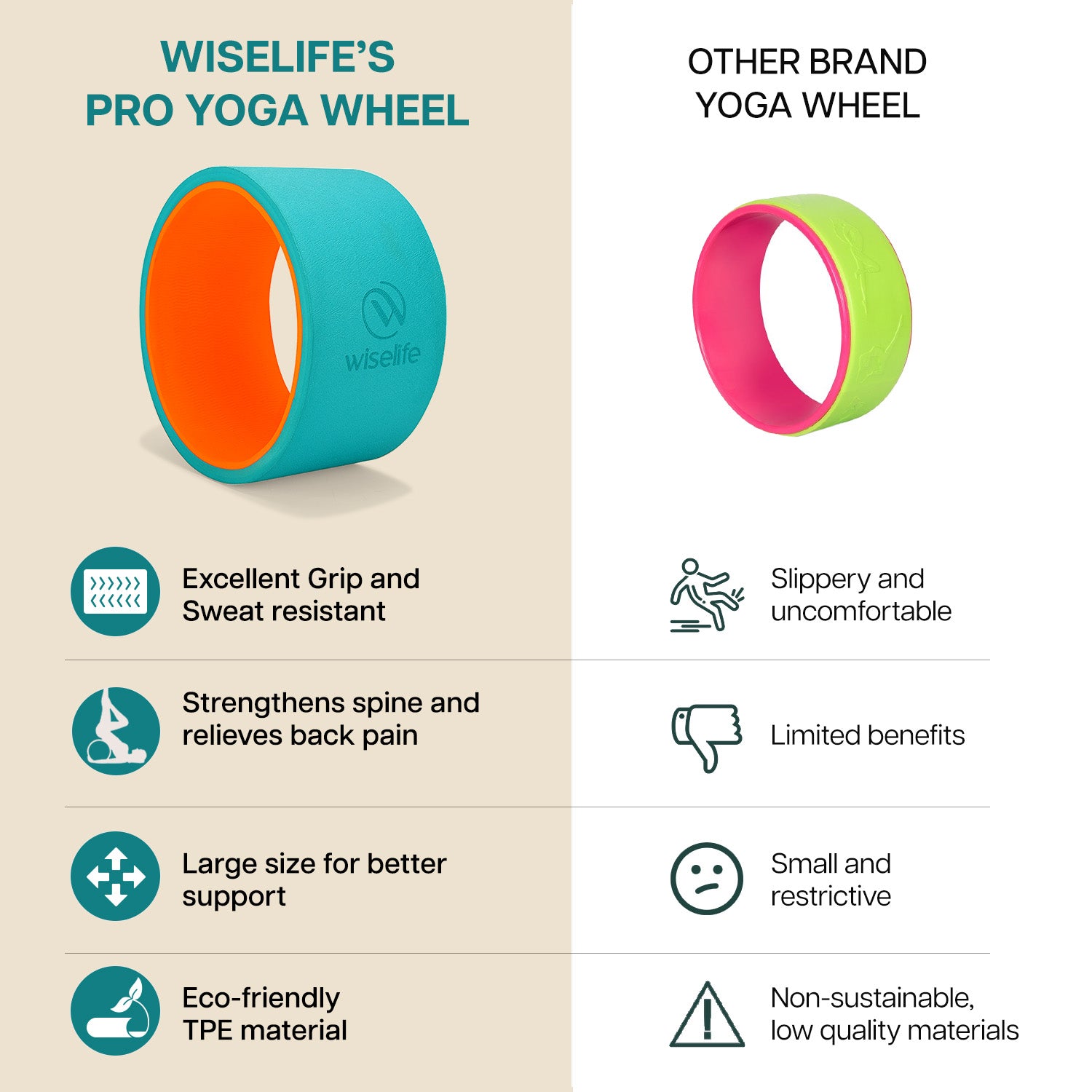 - IMPROVE YOGA POSTURES: A powerful tool for deep stretches and backbends, the WiseLife Pro Yoga Wheel helps open up a whole new range of exercises, enhancing flexibility, alignment, and posture, making it perfect for yogis of all levels- from beginners to advanced practitioners