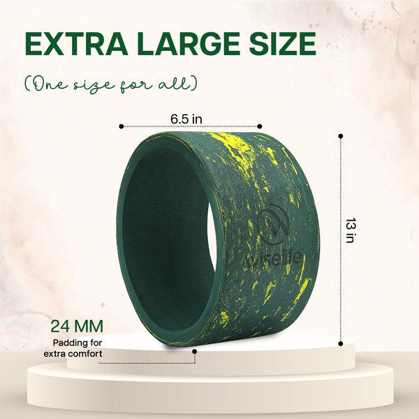 - EXTRA LARGE SIZE FOR SUPPORT & BALANCE: Measuring 13 x 6.5 inches, the WiseLife Pro Yoga Wheel provides exceptional support for the back, hips, and shoulders during stretching and balancing exercises. Its size offers improved stability for deeper backbends, gentle inversions, and more controlled yoga transitions