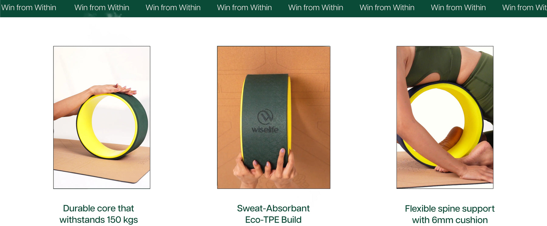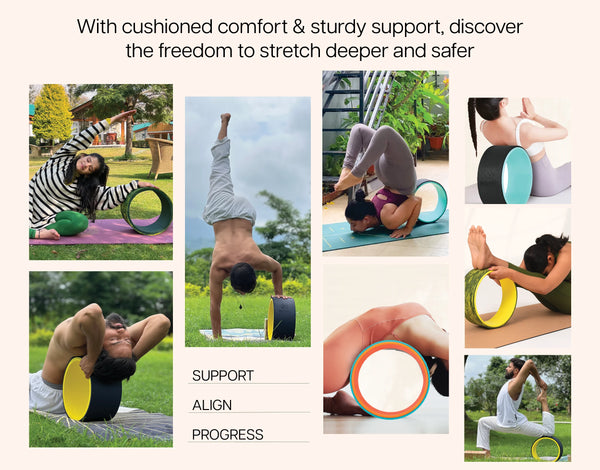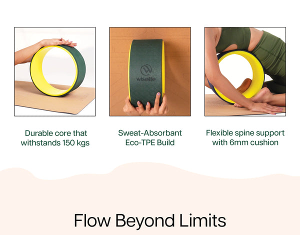 - STRONG, DURABLE & SUPPORTIVE : Built with premium and ECO-TPE outer layer, the WiseLife Yoga Wheel supports up to 150 kgs with ease, offering outstanding durability, sturdiness, and reliability for intense backbends, inversions, and balance poses