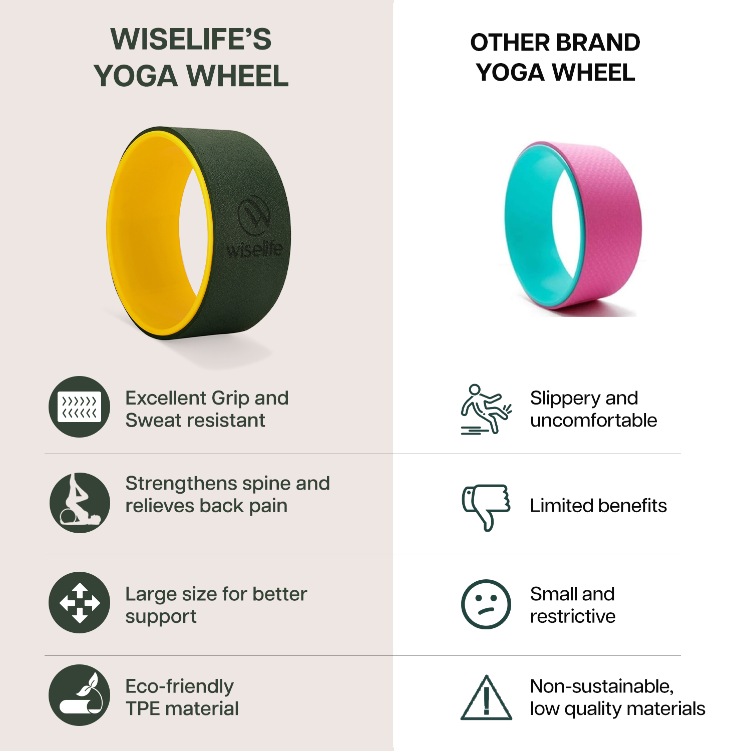 - ENHANCE FLEXIBILITY & MOBILITY : Specially designed to improve range of motion, the WiseLife Classic Yoga Wheel helps open your chest, shoulders, hip flexors, and spine, allowing you to deepen your stretches, release tight muscles, and achieve better posture and flexibility during yoga, pilates, and fitness sessions, making it an essential prop for modern yogis and athletes alike